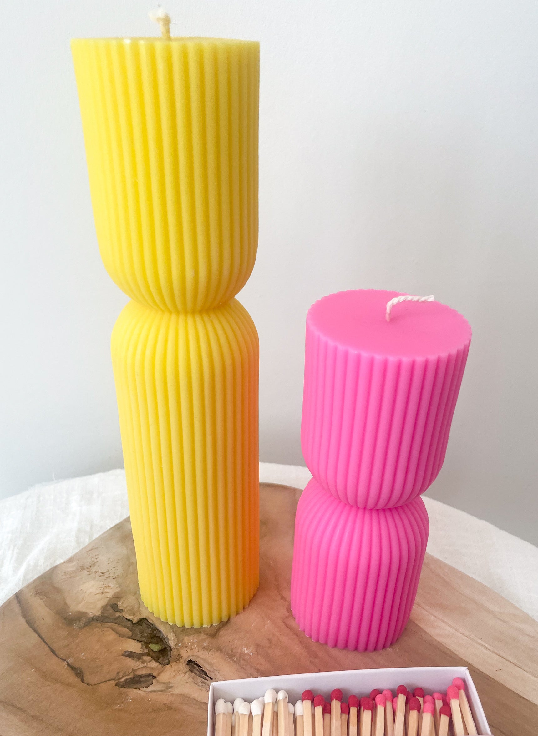 Onze set geribbelde pillarkaarsen staat als een huis om jouw interieur een kleurrijke touch te geven. Laat je omverblazen door de unieke, klassieke vorm die iedere ruimte een warme sfeer en een classy look geeft. Of je nu de set geribbelde pillarkaarsen in je eigen interieur wil plaatsen of als cadeau wil geven, met deze handgemaakte kaarsen sla je nooit de plank mis. Welke kleur kies jij? Ga je voor een frisse uitstraling of houd je het rustig met de kaarsen in een pasteltint?
